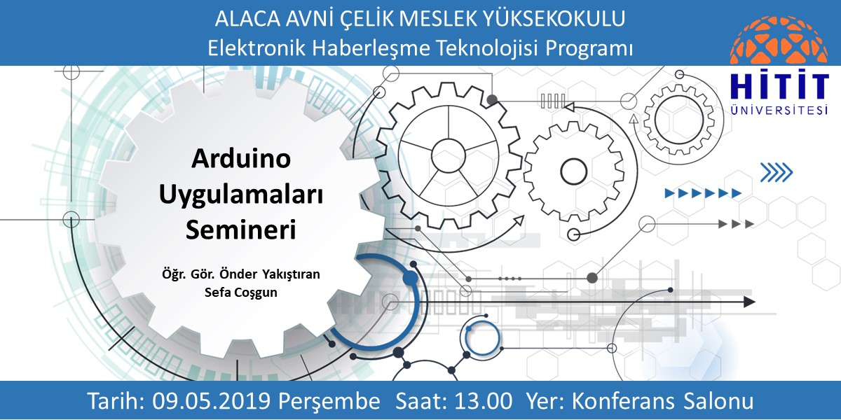 Meslek Yüksekokulumuz Eğitim Komisyonu tarafından organize edilen Eğitim Seminerlerinin ilki Elektronik Haberleşme Teknolojisi programı tarafından 9 Mayıs 2019 Perşembe günü Saat 13.00'de Yüksekokulumuz konferans salonunda gerçekleştirilecektir. "Arduino Uygulamaları" başlıklı sunumu Öğr. Gör. Önder Yakıştıran ve Elektronik Haberleşme programı 2. sınıf öğrencilerinden Sefa Coşgun sunacaklardır. Tüm personel ve öğrencilerimiz davetlidir.